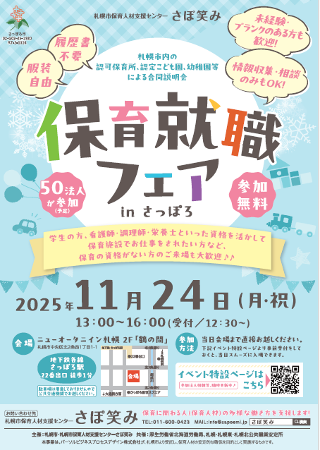 2025年11月24日(月・祝)開催!【保育就職フェアinさっぽろ】※10月17日更新※