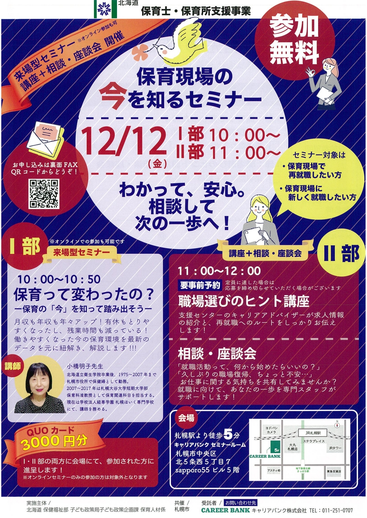 12月12日(金)開催♬保育現場の今を知るセミナーのご案内 ※参加無料
